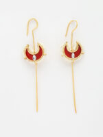 These earrings are crafted with a functional top hook that curves over the ear, allowing the crescent motif to sit perfectly on the lobe while the long gold-plated stick drops down in a clean, vertical line. This “ear-cuff” style offers a secure fit and a sophisticated, edgy silhouette that elongates the neck and complements any face shape.