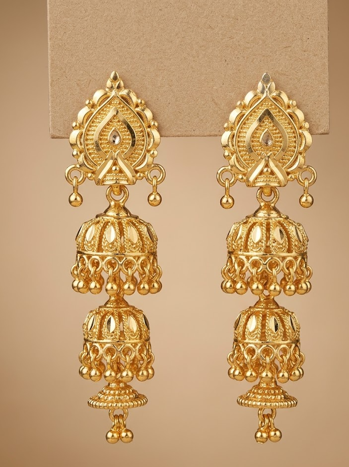 Type: Traditional Double-Layer (Step) Jhumka Earrings.