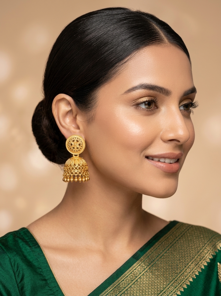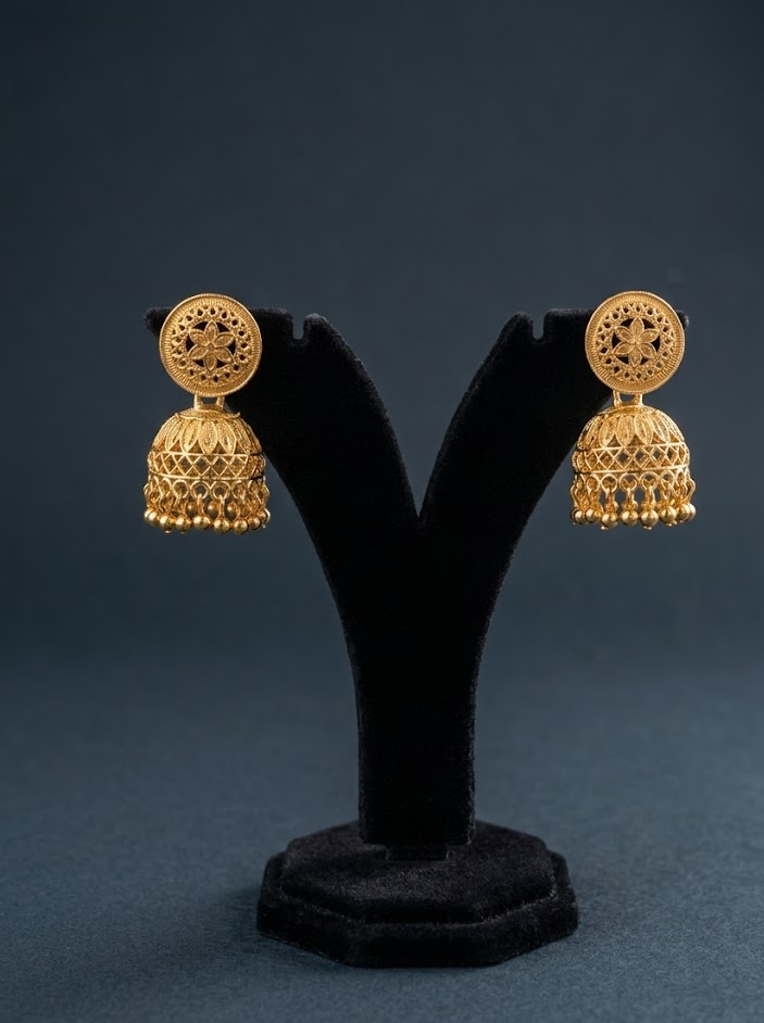 Type: Traditional Filigree Dome Jhumka Earrings.