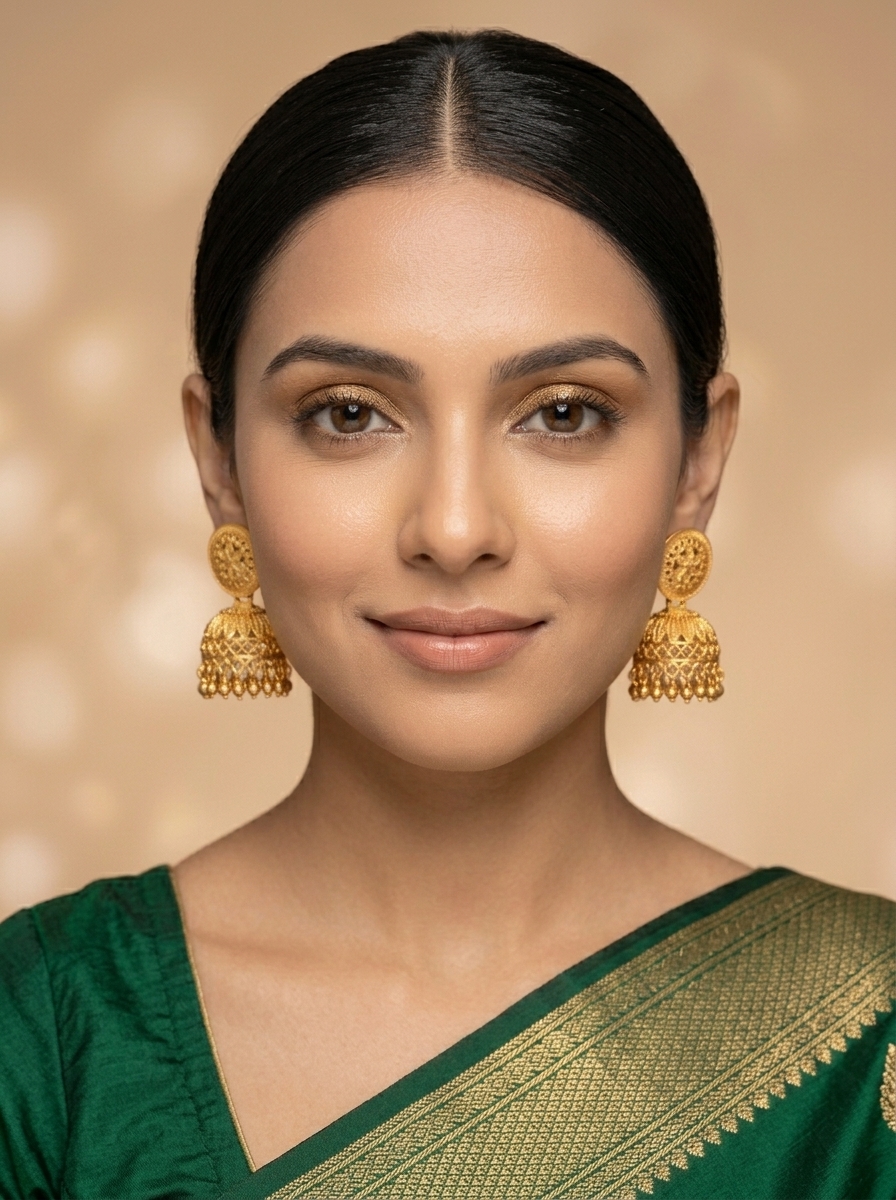 Accents: Traditional gold bead droplets (ghungroo style) for a classic touch.
