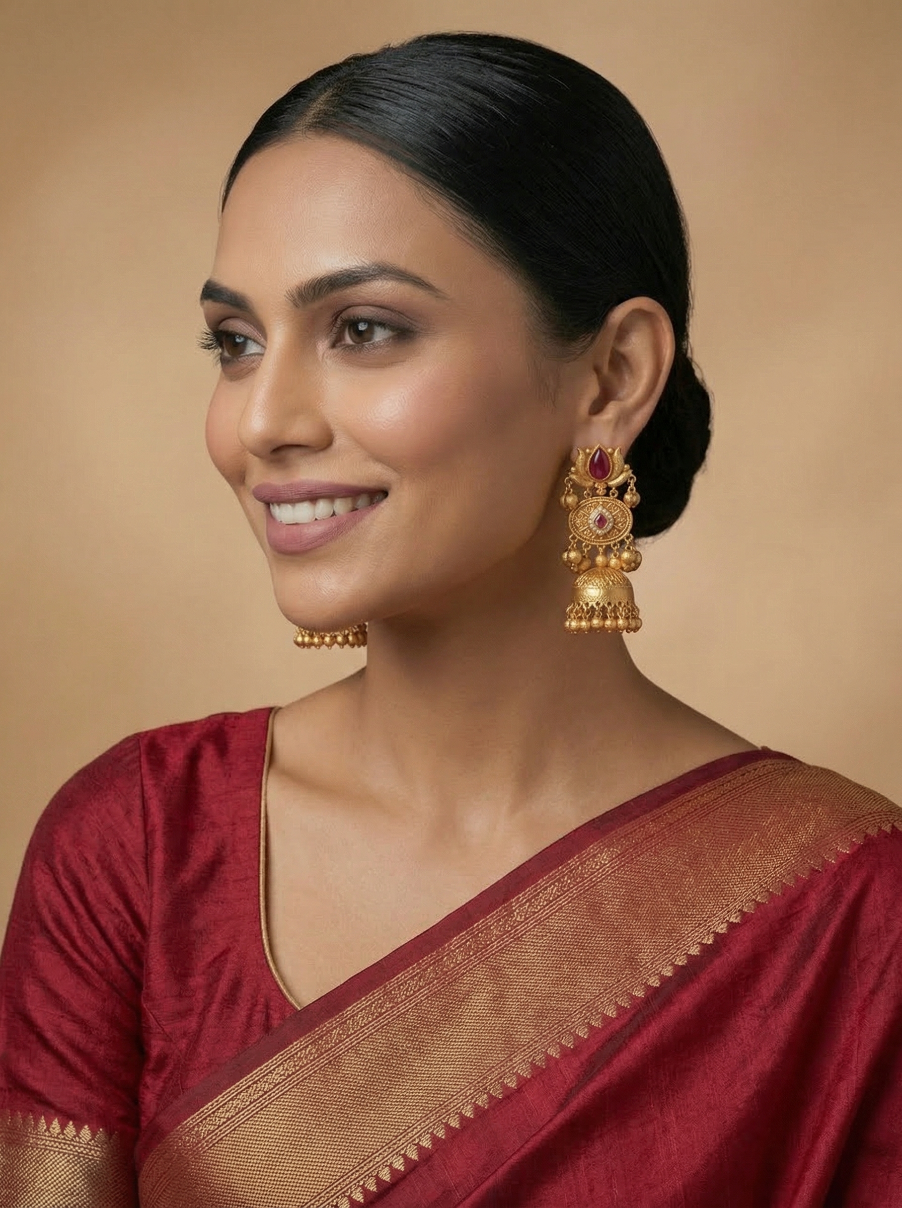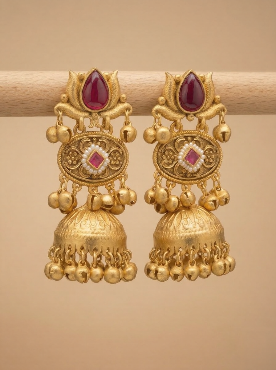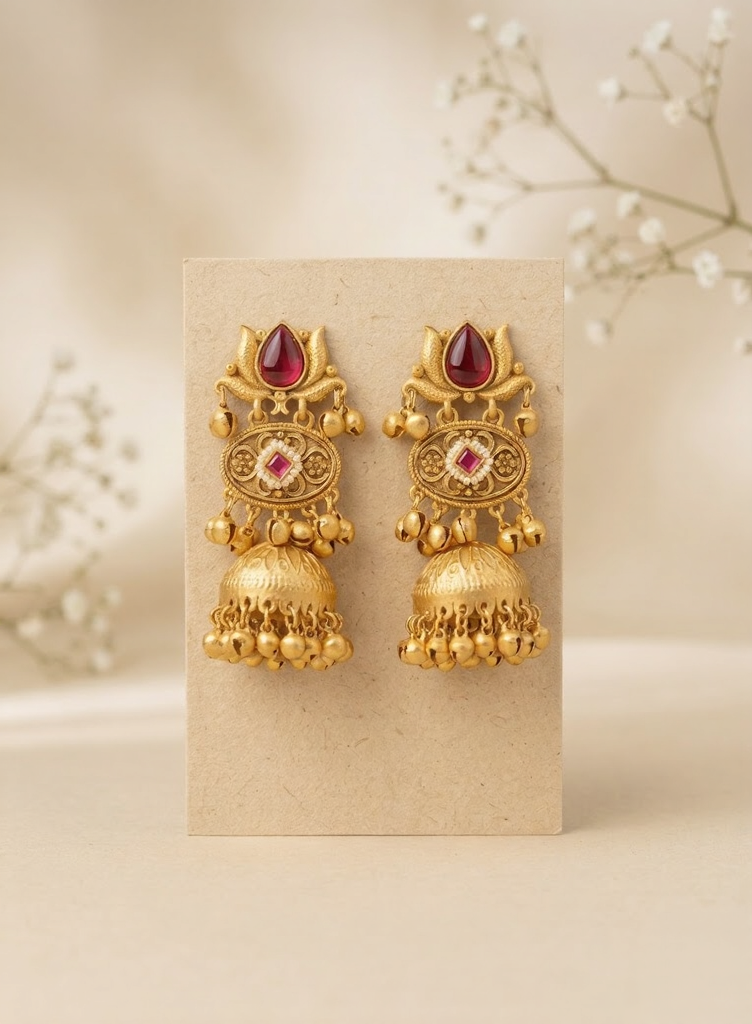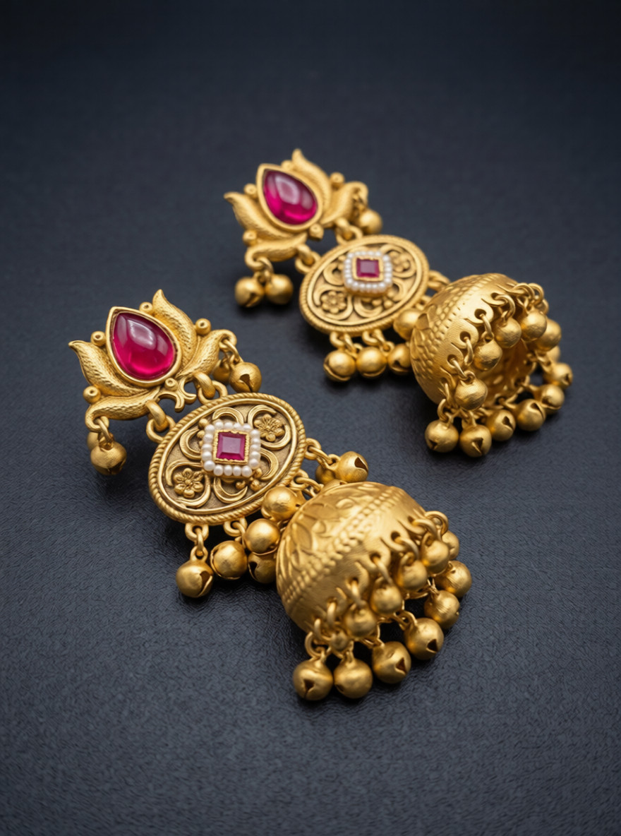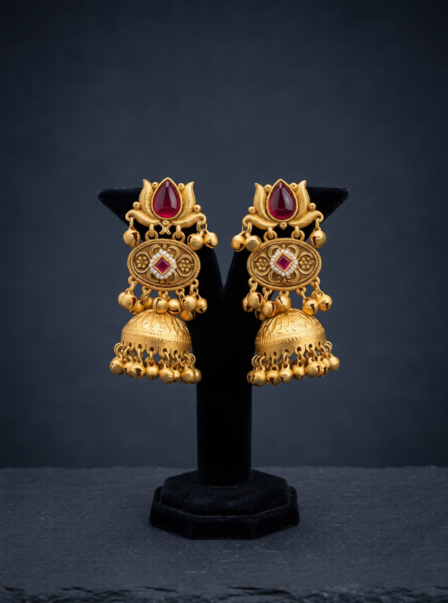 • Type: Traditional Temple-Style Jhumka Earrings.